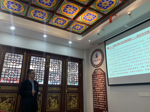 1月(yuè)19日(rì),“武漢市(shì)文物(wù)保護工程行(xíng)業(yè)協會(huì)籌備座談會(hγuì)”在天時(shí)公司文保修繕創新工作(zuò)室隆重召開(kāi),會(huì)議(yì)由房(fáng)産集團≠公司副總經理(lǐ)、天時(shí)公司董事(shì)長(cháng)趙征主持,市(shì)文旅局文保處處長(cháng)、湖(hú)北§(běi)省古建築保護中心總工程師(shī)、華中科(kē)技(jì)大(dà)學教授等十餘位專家(jiā)學者、文保界行(xín g)業(yè)翹楚參加座談。